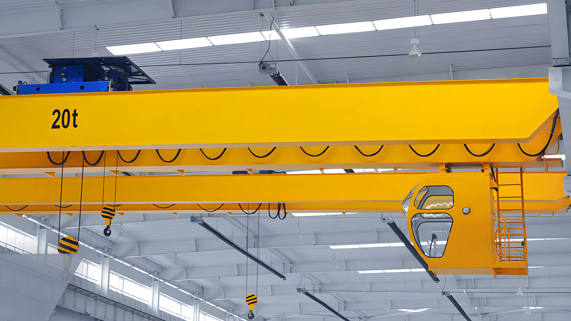 QD型通用橋式起重機(jī),由箱型橋架、大車運(yùn)行機(jī)構(gòu)、小車、電氣設(shè)備等部分構(gòu)成;本產(chǎn)品具有適應(yīng)多種場(chǎng)地的工作特點(diǎn);另外,該機(jī)全部機(jī)構(gòu)均在操作室內(nèi)操縱,且操縱室內(nèi)視野開闊;露天使用時(shí),需增加防雨設(shè)備。根據(jù)用戶要求可以選用遙控或線控操作。